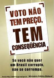A proxima-se o dia da eleição e sabemos que é de costume alguns canditados oferecer dinheiro ou outros benefícios pelo seu voto. Pensando nisso fizemos uma coleção de algumas propagandas que versa sobre o tema. O nosso objetivo é despertar no leitor uma visão crítica sobre o assunto, mostrando em resumo o que a mídia nacional publicou sobre este assunto nos últimos meses. Reflita e faça a melhor escolha para sua cidade.